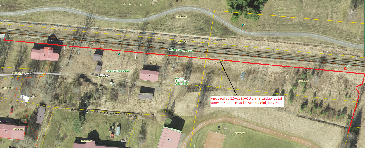Hanke taust. Käru Põhikool (sisuliselt kool-lasteaed) ja selle staadion koos mõningate õpperuumidega ning Käru terviserada ja Käru rahvamaja asuvad teine-teiselpool raudteed ning lühim teekond nende vahel on raudtee ületamisega selleks mitte ettenähtud ohtlikus alas. Samuti on oht, et staadionil mänguhoos olevad lapsed satuvad eneselegi märkamatult raudteele. Kõik see seab ohtu inimeste, eelkõige laste elu ja tervise. Seetõttu Türi vald koostöös Edelaraudtee AS-ga kavandab raudtee äärde (katastriüksuste nr 37501:003:0030 ja 37501:003:0046 ning 37501:003:0066 piirile) piirdeaia ehitamist, et takistada inimeste sattumist raudteele, vastavalt lisatud skeemile ( Lisa 1„Piirdeaia skeem 2021.PNG").