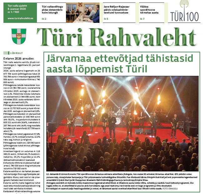 Lähipäevil jõuab kõikidesse Türi valla postkastidesse veebruarikuu Türi Rahvaleht! Sedakorda lehes: • Jaanuar on parimatele pai tegemise kuu • Väätsa rahvamajas tänati Türi valla...