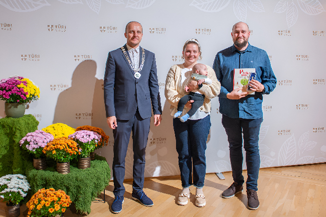 Laura ja Mikk Otsus oma väikese poja Oliveriga vallavanem Sulo Särkineni vastuvõtul. Foto: Merle Rüütel/ Türi vald 7.oktoobril toimus Türi vallavanema vastuvõtt viimase kuue kuu jooksul...
