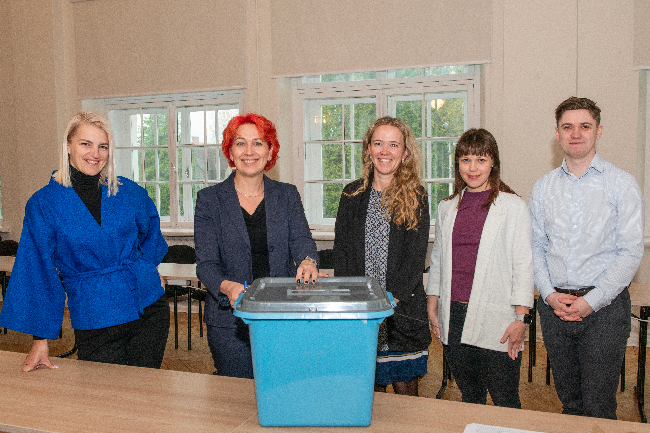 Türi noortevolikogu valimiskomisjoni liikmed. Vasakult: Türi Noortekeskuse juhataja Jane Reiljan-Rajasaar, valimiskomisjoni esimees Pipi-Liis Siemann, Türi Ühisgümnaasiumi arendusjuht Greeta Kaschan, Väätsa Põhikooli huvijuht Heleri Raasik ja Türi abivallavanem Elar Niglas. Foto: Merle Rüütel/ Türi vald